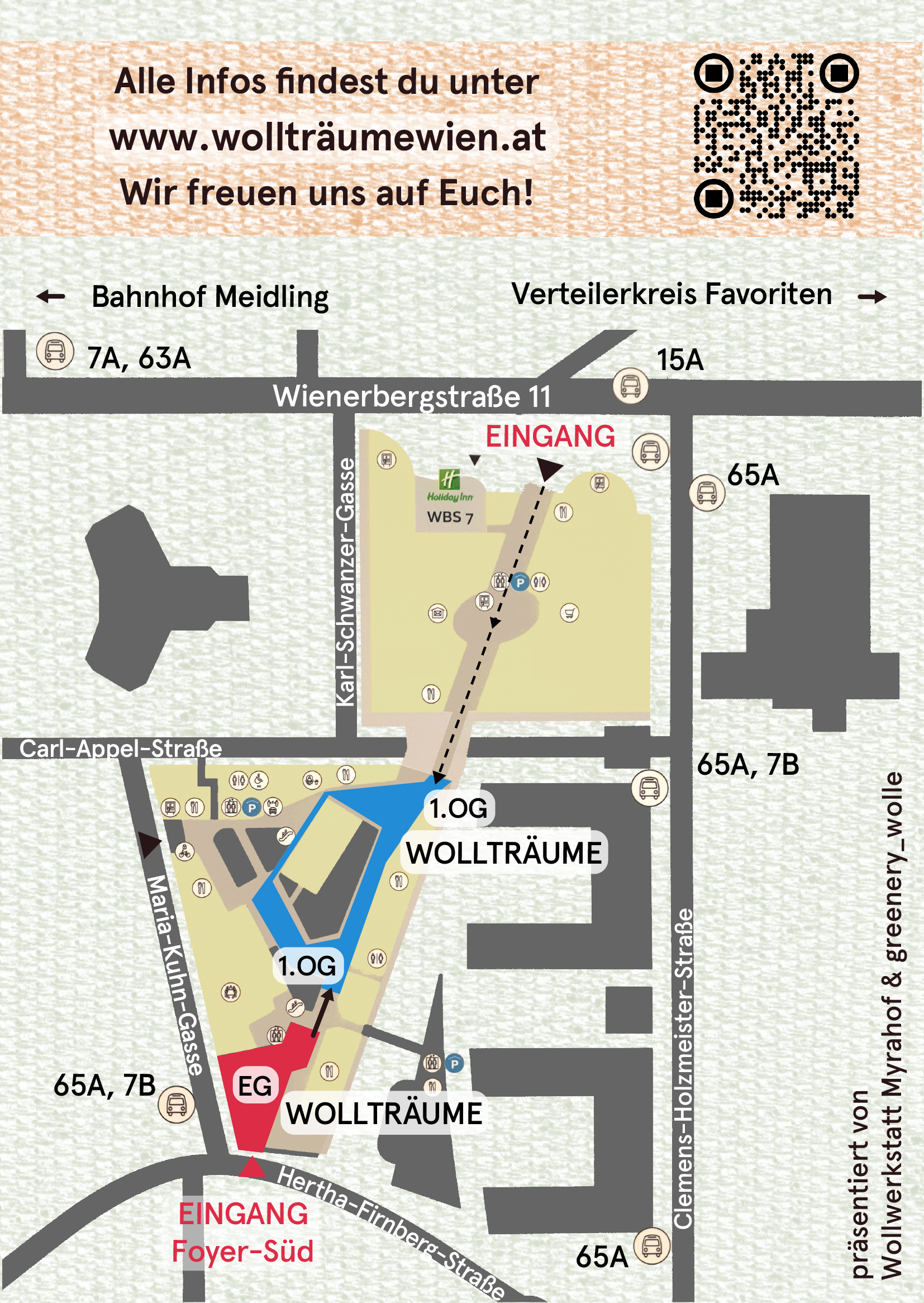 – Die Auskunft, wie man mit Öffis oder dem Auto zum my hive bzw. zur